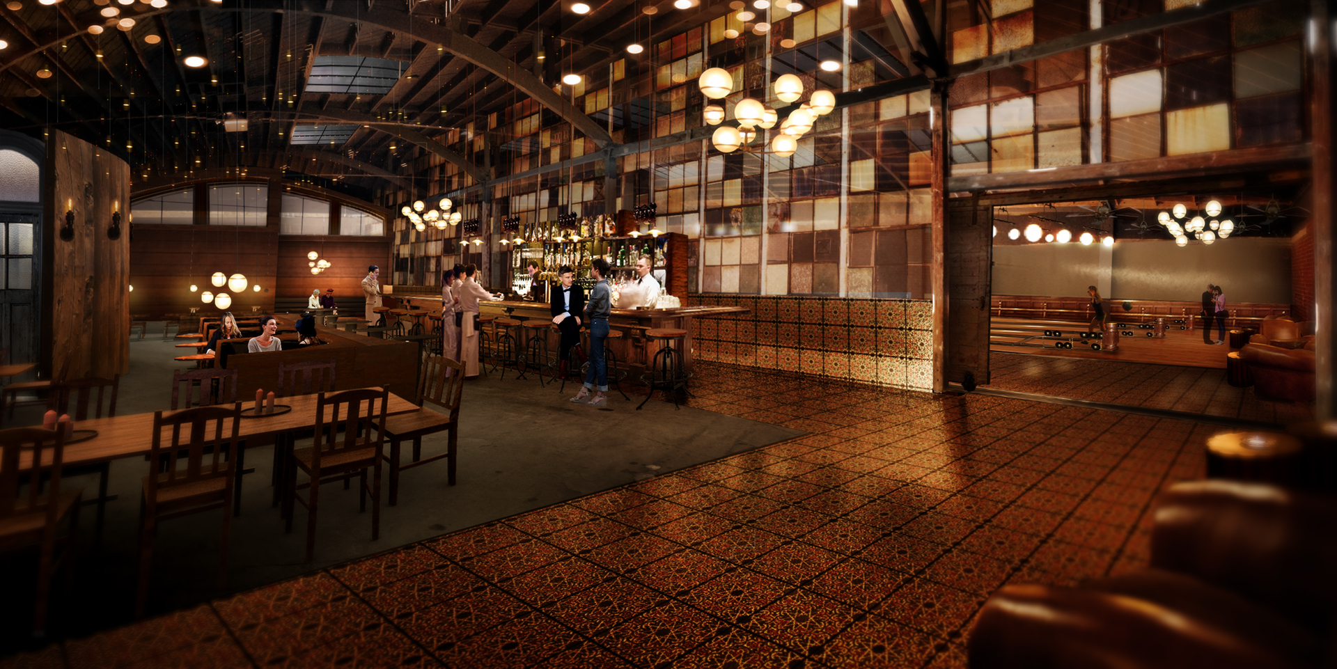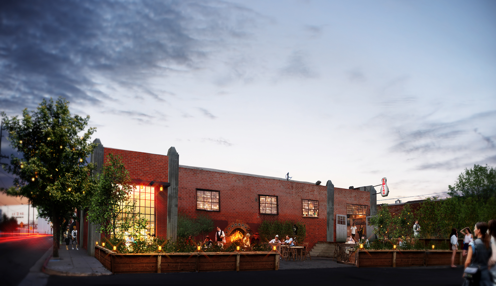 LA Bar 01 Restaurant and Bar Design Assist & Visualization Client:Confidential PUBLIC provided design concepting assistance and visualization for a Bar/Bowling Alley/Drive-In in the Downtown LA Arts District Existing Site Exterior Dining Drive-In < >