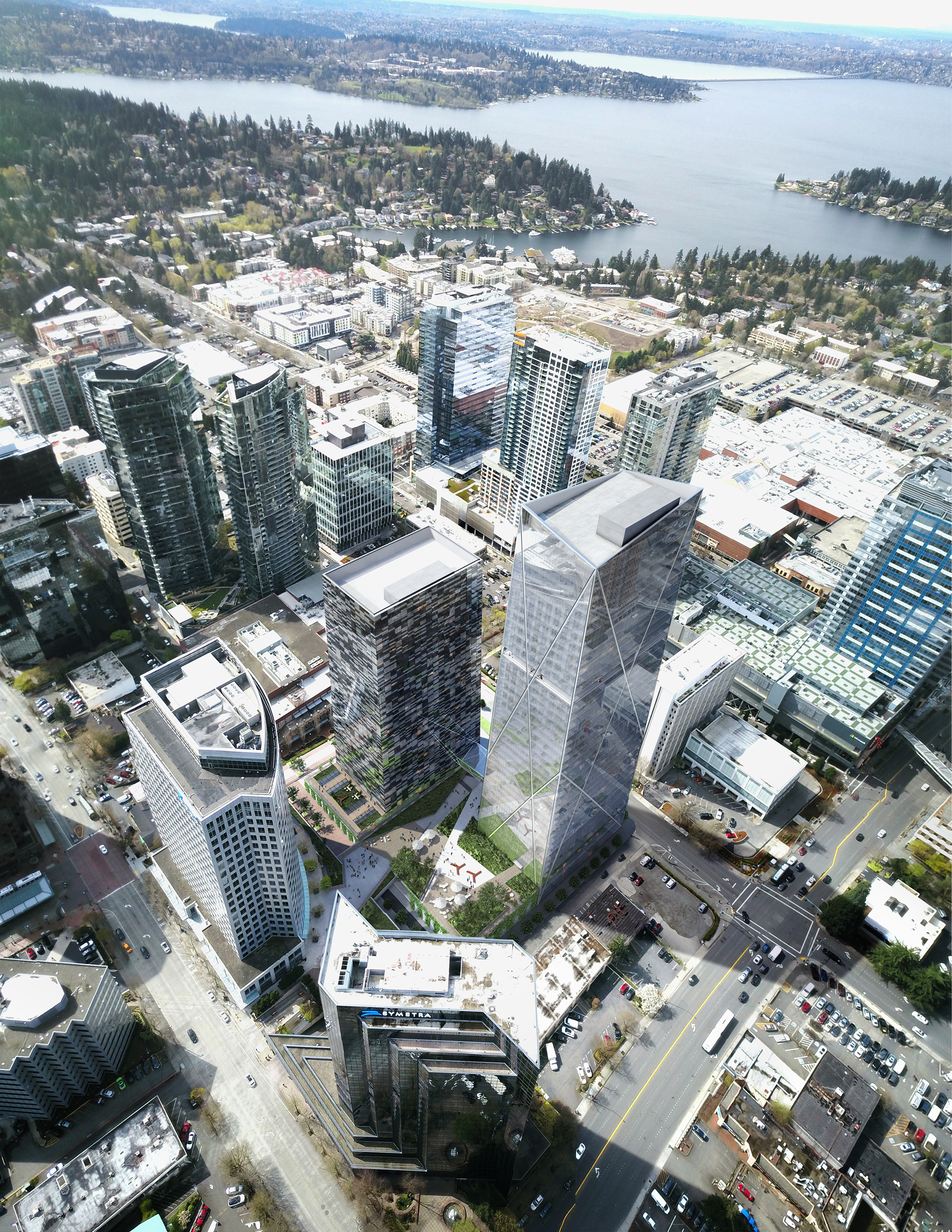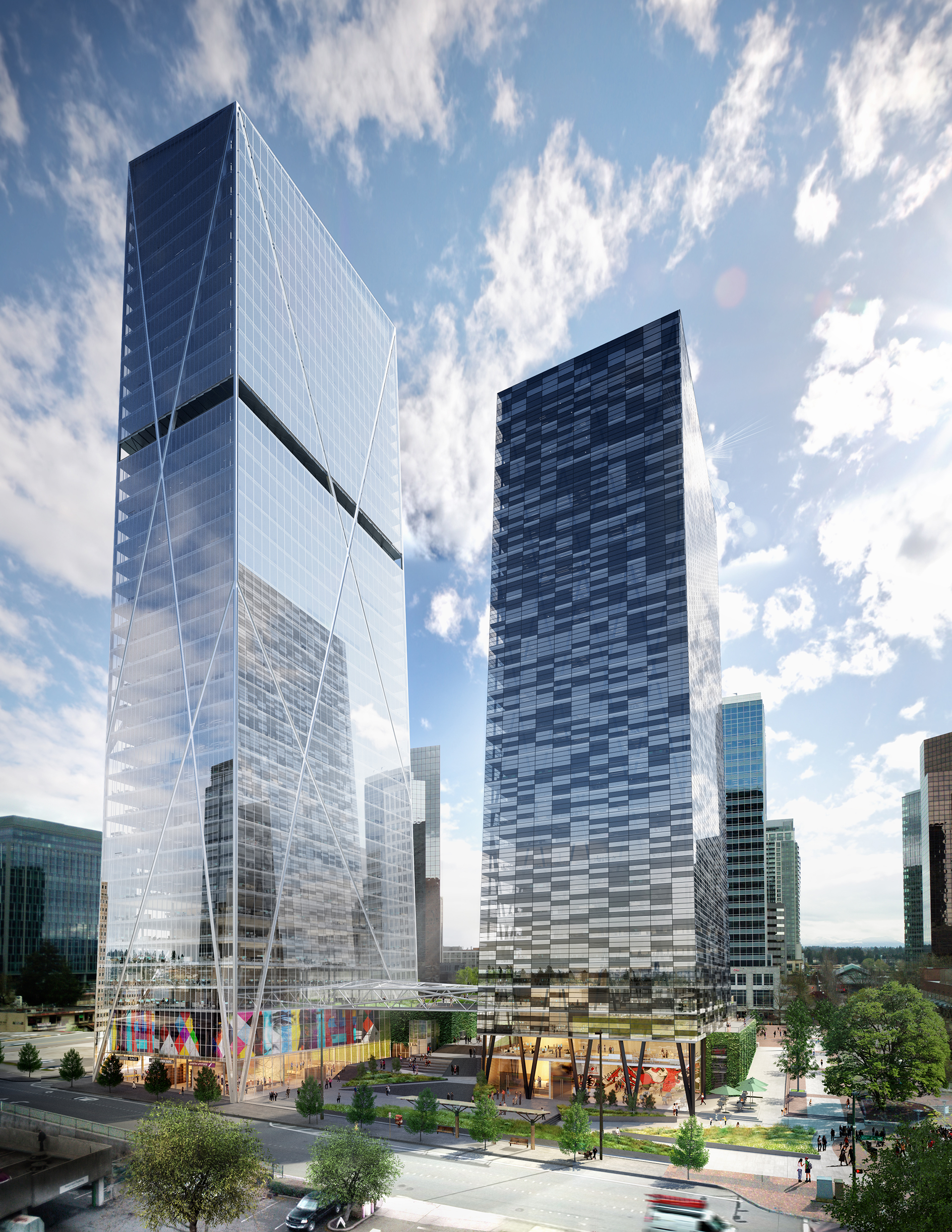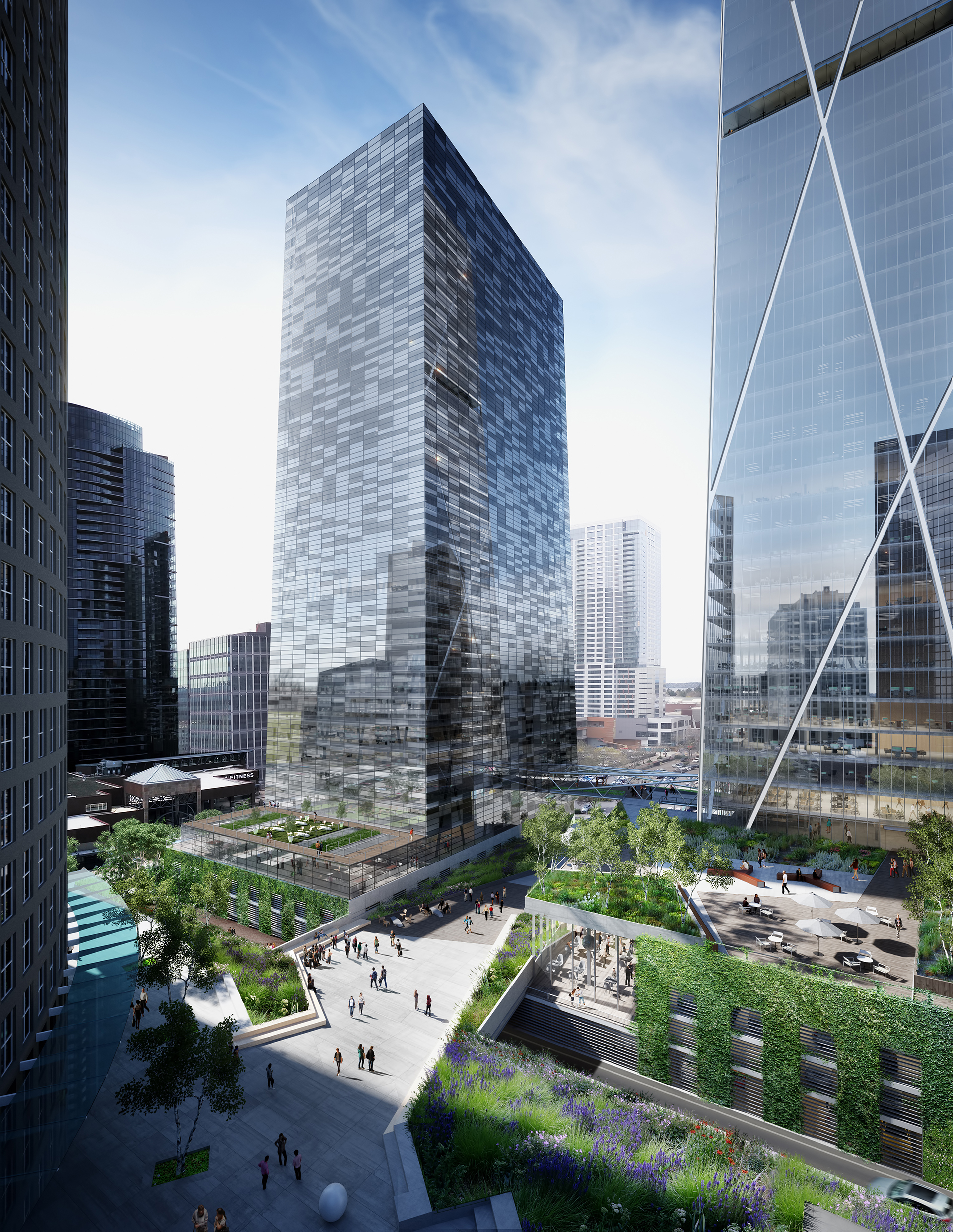 SRO OFFICE TOWER Design Assist & Visualization Client:Kilroy Realty PUBLIC provided design concepting assistance and visualization for a commercial office tower in Bellevue Washinton Garden Bridge Entry < >